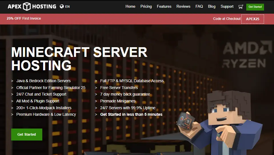 If you love Minecraft, Apex Hosting is one of the top options in 2025. It is built with Minecraft in mind, offering great performance, easy setup, and helpful features without costing too much. Even though it’s a budget host, it doesn’t feel like one.