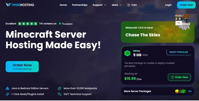 Even though it’s a smaller company, WiseHosting has built a loyal community thanks to its reliable performance and fair pricing. Even if you need a short-term test server or a long-term setup for your group, they offer flexible plans to match your needs.