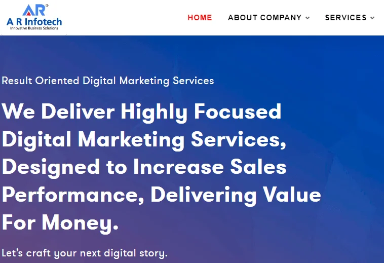 A R Infotech is the leading IT Company that offers web development, web designing, and digital marketing services to a wide variety of industry verticals. As one of the leading Web Development and Digital Marketing companies has a team of creative, skilled, and experienced professionals who use the latest technologies and advanced methodologies in their work process.