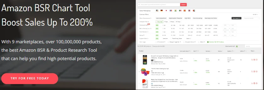 AmzChart supports over 9 marketplaces. It currently supports markets in India, the US, the United Arab Emirates, Japan, France, Germany, the UK, Mexico, and Spain, and covers over 100,000,000 products. Amazon BSR measures the popularity and sales of a product, depending on its category and sub-category. By analyzing the BSR data, you can identify the high-demand and low-competition products, improve your BSR accordingly, and boost your sales.