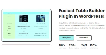 The Ninja Table WordPress Plugin is one of the best for showing data in a tabular format on my website. The visual is clean, and personalized, and has multiple platforms for creating products and documents. It is far more responsive.