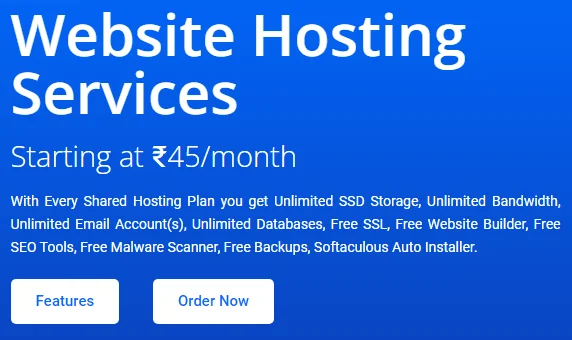 | Starter | Linux | Unlimited | Unlimited | CPANEL | 1 | ₹45.00 per month | |||