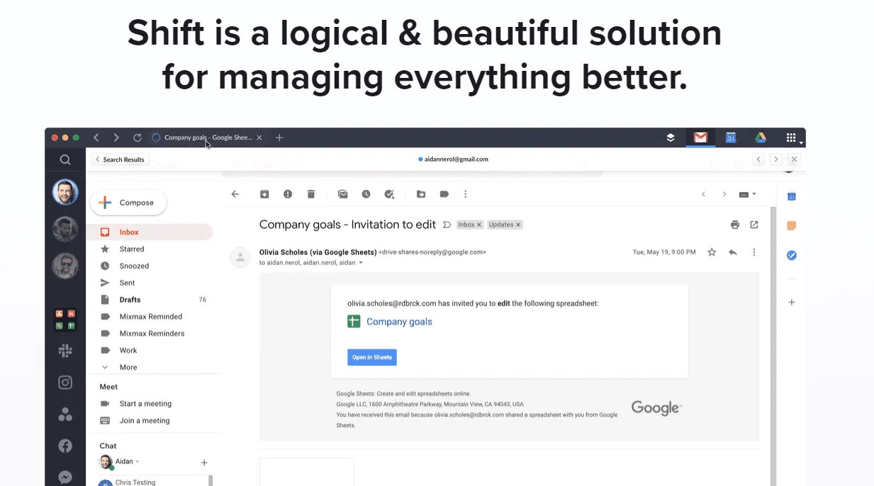 With the help of Shift you can enhance your workstation with your favourite Chrome plugins, including Grammarly, Boomerang, Last Pass, and a slew of others. That improves the impact of your work by using your favourite plugins to enhance your productivity.