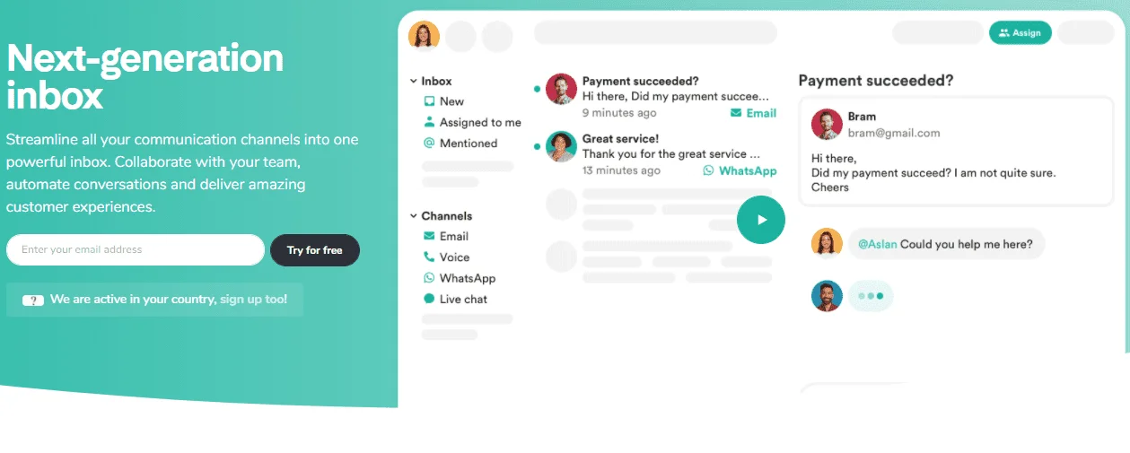 With the help of team Inbox you and your team can collaborate into one thread by answering all your incoming messages fast and efficiently, you can also switch from external communication into internal communication in one second for communicating with your team and colleagues, it also offers you to analyse the performance of your team and company with the help of inbox analytics.