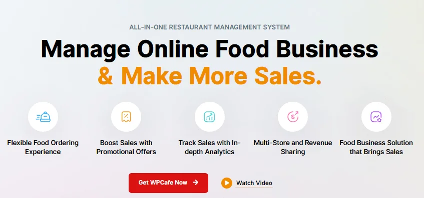 WPCafe is an all-in-one restaurant management system. It helps you to manage your online food business and make more sales. It offers unique features-33+ food menu templates, discount options on the food menu, food ordering pickup or delivery schedule, both percentage & flat tip options, location-based food menu, multiple product addons, live order notification with sound and tag, food with reservation, holiday special reservation schedule, single/multiple slot reservation schedule, branch-wise seat capacity & reservation, food ordering with QR code, dynamic email notification, customizable mini cart & quantity picker, and more.